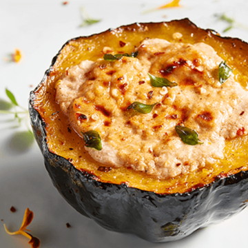 Chef Notes: The blend of cumin, coriander, cinnamon and paprika in the spiced ricotta mixture adds an exotic African flavor to the creamy ricotta and pairs beautifully with the sweet, nutty taste of acorn squash.