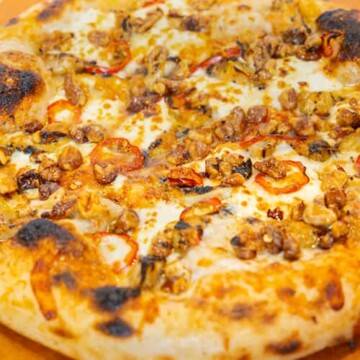 To prepare Pizza: Preheat a pizza oven to 550°F (or as high as your oven will go) for 30 to 45 minutes. Remove the proofed dough from the bowl and divide in half. Shape both halves into balls, cover and let sit for 20 minutes. When both have risen again, take one ball and slightly press from the center outward, using your fingertips, leaving an untouched, puffy lip. When you have started the shape, transfer dough to a semolina dusted peel and work out further until desired pizza crust thickness is achieved. Brush dough with Anchovy Browned Butter Baste. Sprinkle with half of grated Mozzarella cheese. Dollop half of Ricotta cheese over Mozzarella. Layer half of artichoke strips over cheese then sprinkle with half of reserved, chopped walnuts. Top with half of Parmesan cheese. Bake until desired doneness and remove from oven. Repeat layering process with remaining dough and toppings.